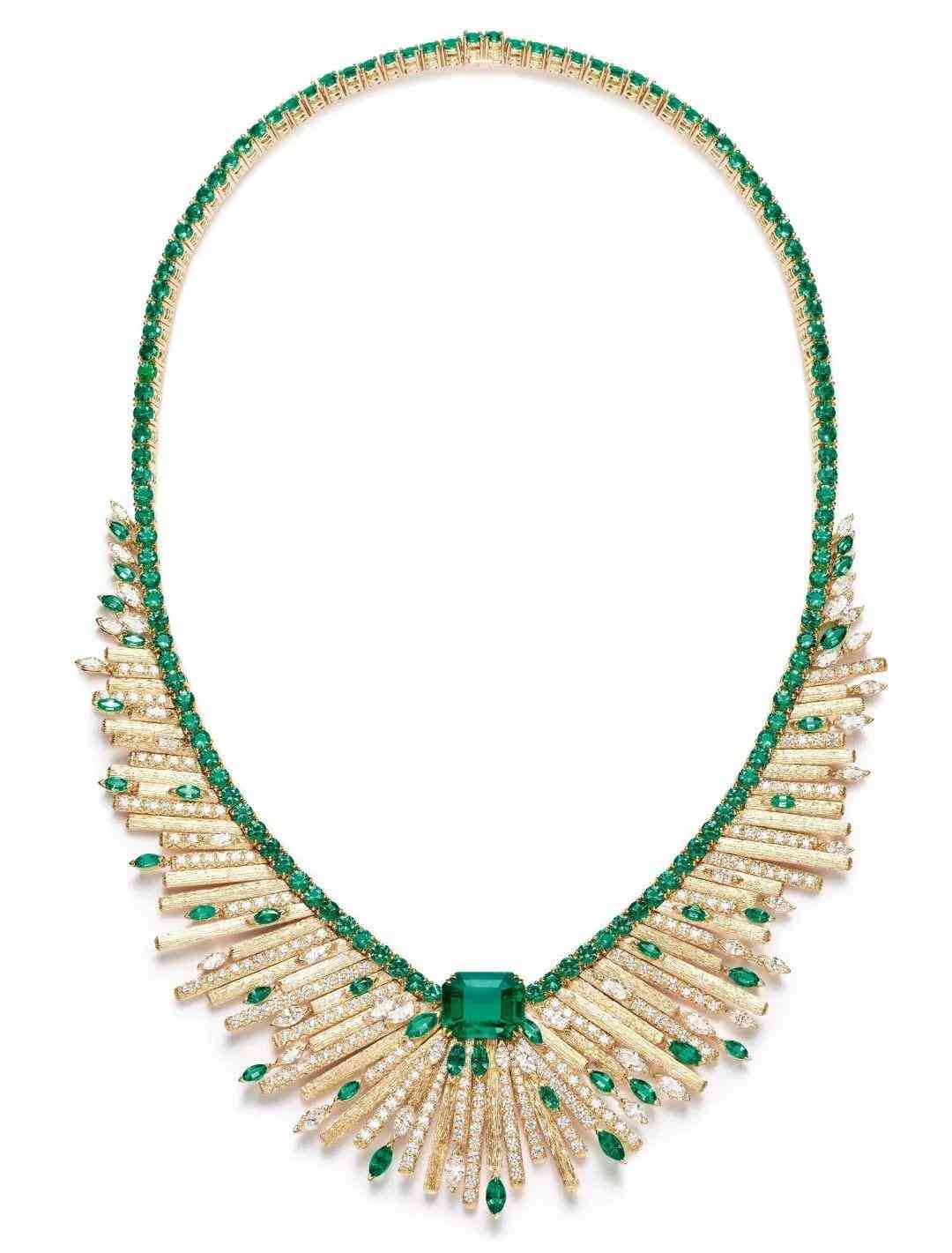 寶詩(shī)龍 H?tel de la Lumière 系列中的 Soleil Radiant 珠寶作品雖然沒(méi)有用彩色寶石,但是不同切工的鉆石和放射狀的線(xiàn)條也能生動(dòng)地表現(xiàn)太陽(yáng)的光芒。這條Soleil Radiant 項(xiàng)鏈制作過(guò)程耗時(shí)超過(guò) 1,000 小時(shí),總共運(yùn)用了約 1,600 顆不同切工和大小的鉆石,致敬了旺多姆廣場(chǎng)和“太陽(yáng)王”路易十四。