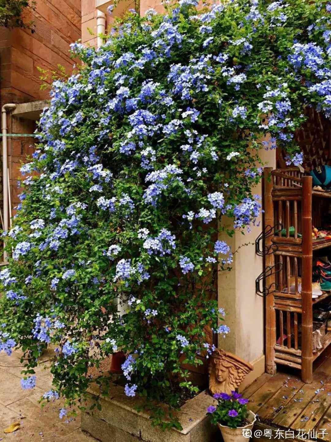 清涼的藍(lán)雪花,皮實(shí)沒病蟲,2年就爬滿了一面墻,