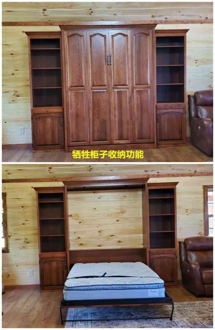 而另一種是平開式柜體,這種同樣實(shí)用,不過每次將柜體打開,再打開床鋪,必須得體力好的人才能做好,否則來回搬動(dòng)柜體,體力吃不消。當(dāng)然如果像平開門那樣給裝五金件的話,可能相對(duì)輕松一點(diǎn)。