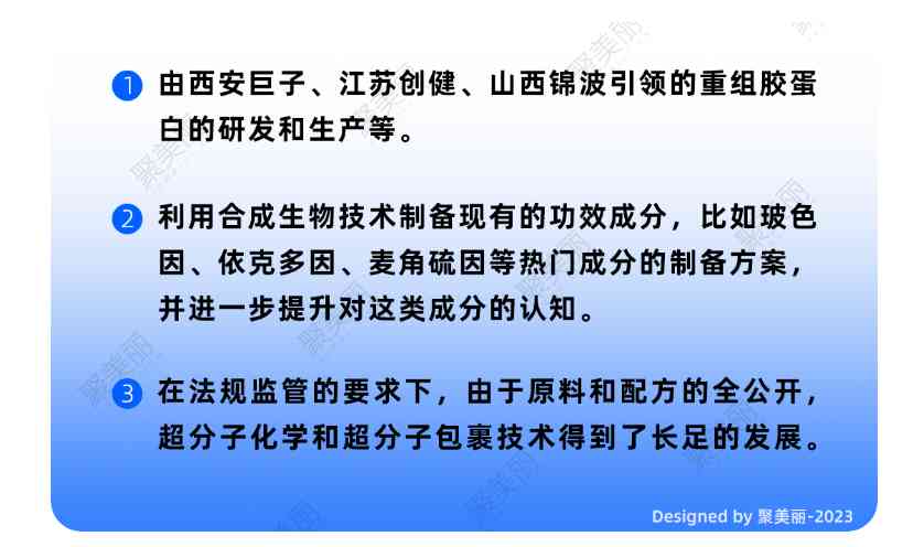 此前,聚美麗曾在“美妝狠活2023”系列中總結(jié)了近期行業(yè)關(guān)注的熱門成分以及研發(fā)走向(詳見聚美麗往期文章《2023年,國貨突破原料封鎖的開端之年?丨美妝狠活2023》),我們看到,國內(nèi)企業(yè)正逐漸通過自主創(chuàng)新,突破原料“卡脖子”現(xiàn)狀。