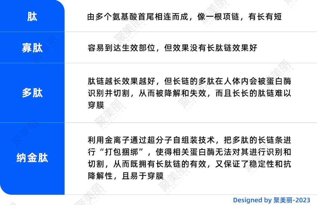 國內(nèi)企業(yè)佰傲再生也曾通過智能靶向超分子技術(shù)平臺開發(fā)出一種“超分子多肽“——納金肽,他們采用20納米的金顆粒包裹六勝肽,使人體內(nèi)的蛋白酶無法識別和切割多肽,達(dá)到穩(wěn)定高效的特點(diǎn),據(jù)稱這是目前用于化妝品中的最長肽鏈。