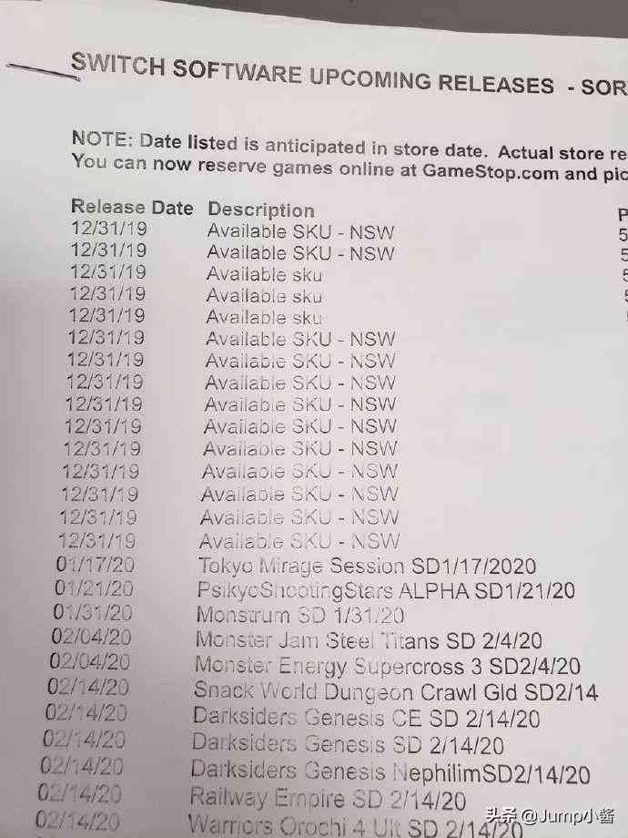 3. Gamestop出現(xiàn)了12款全新Switch游戲的SKU占位符