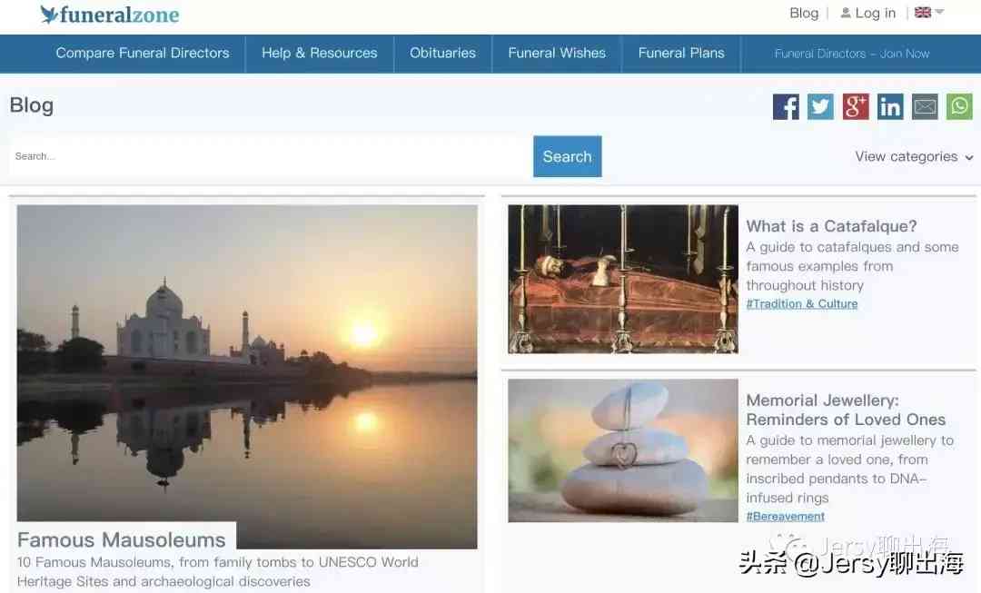 funeralzone 是一個關(guān)于葬禮的博客,介紹了世界各地不同的葬禮形式,葬禮常用紀念品,葬禮時該如何穿戴…等等,可以說是一個關(guān)于葬禮的一切的網(wǎng)站,和火葬珠寶這種產(chǎn)品非常貼合。