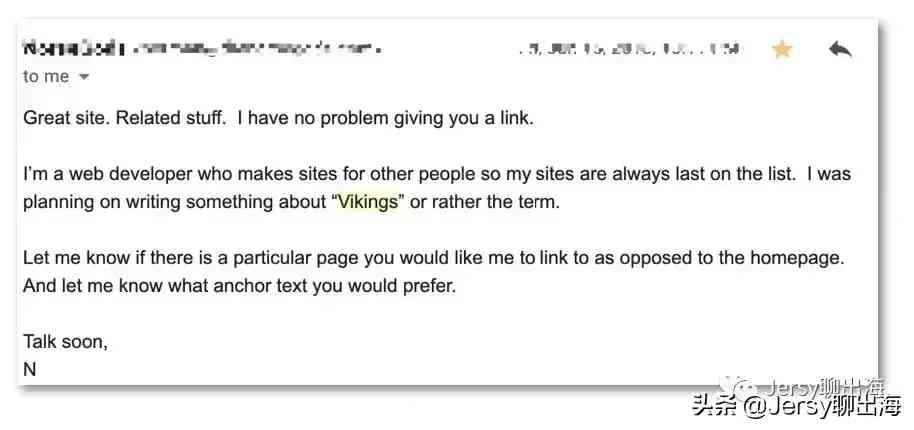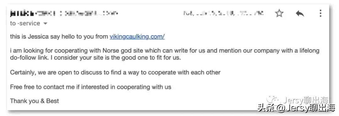 我在郵件中先介紹了自己的站點Vikingcaulking.com,一個售賣維京周邊飾品的站點( this is xxxx say hello from vikingcaulking.com)