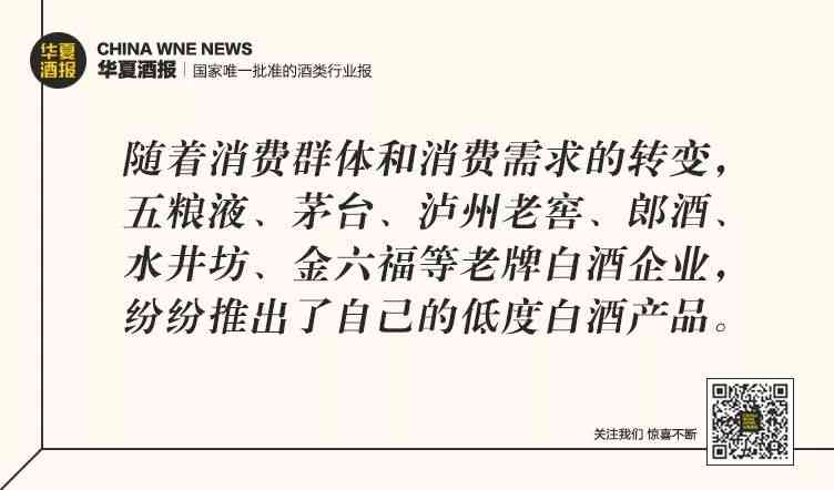 之后,眾多酒企紛紛把握行業(yè)發(fā)展的趨勢,相繼發(fā)力低度酒市場,低度酒產(chǎn)品層出不窮。