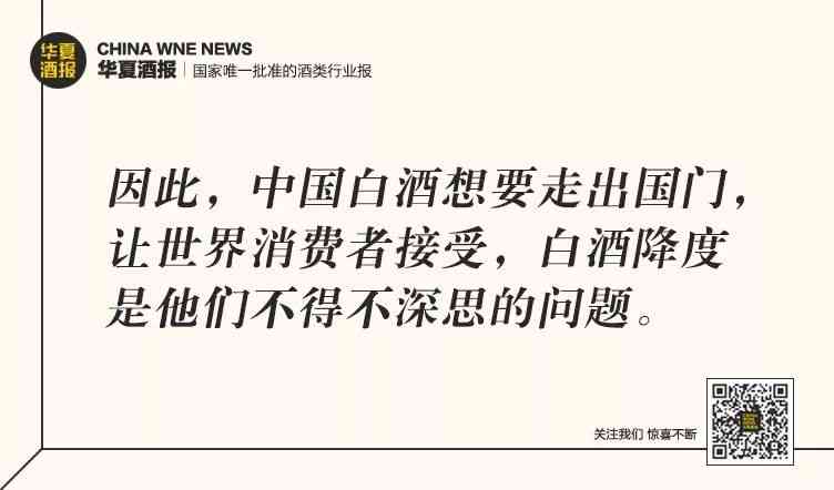因此,中國白酒想要走出國門,讓世界消費(fèi)者接受,白酒降度是他們不得不深思的問題。