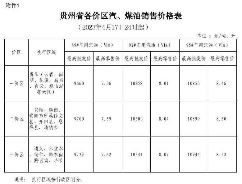 根據(jù)國(guó)家成品油價(jià)格形成機(jī)制,國(guó)家發(fā)展改革委決定自2023年4月17日24時(shí)起上調(diào)國(guó)內(nèi)成品油價(jià)格。按照國(guó)家調(diào)整要求和相關(guān)規(guī)定,貴州省89#汽油(國(guó)VIA)、0#柴油價(jià)格每噸在現(xiàn)行標(biāo)準(zhǔn)基礎(chǔ)上分別提高550元和525元,具體價(jià)格可由各經(jīng)營(yíng)企業(yè)在不超過(guò)最高批發(fā)、零售價(jià)格的前提下確定。調(diào)整后各油品最高價(jià)格見(jiàn)附件。