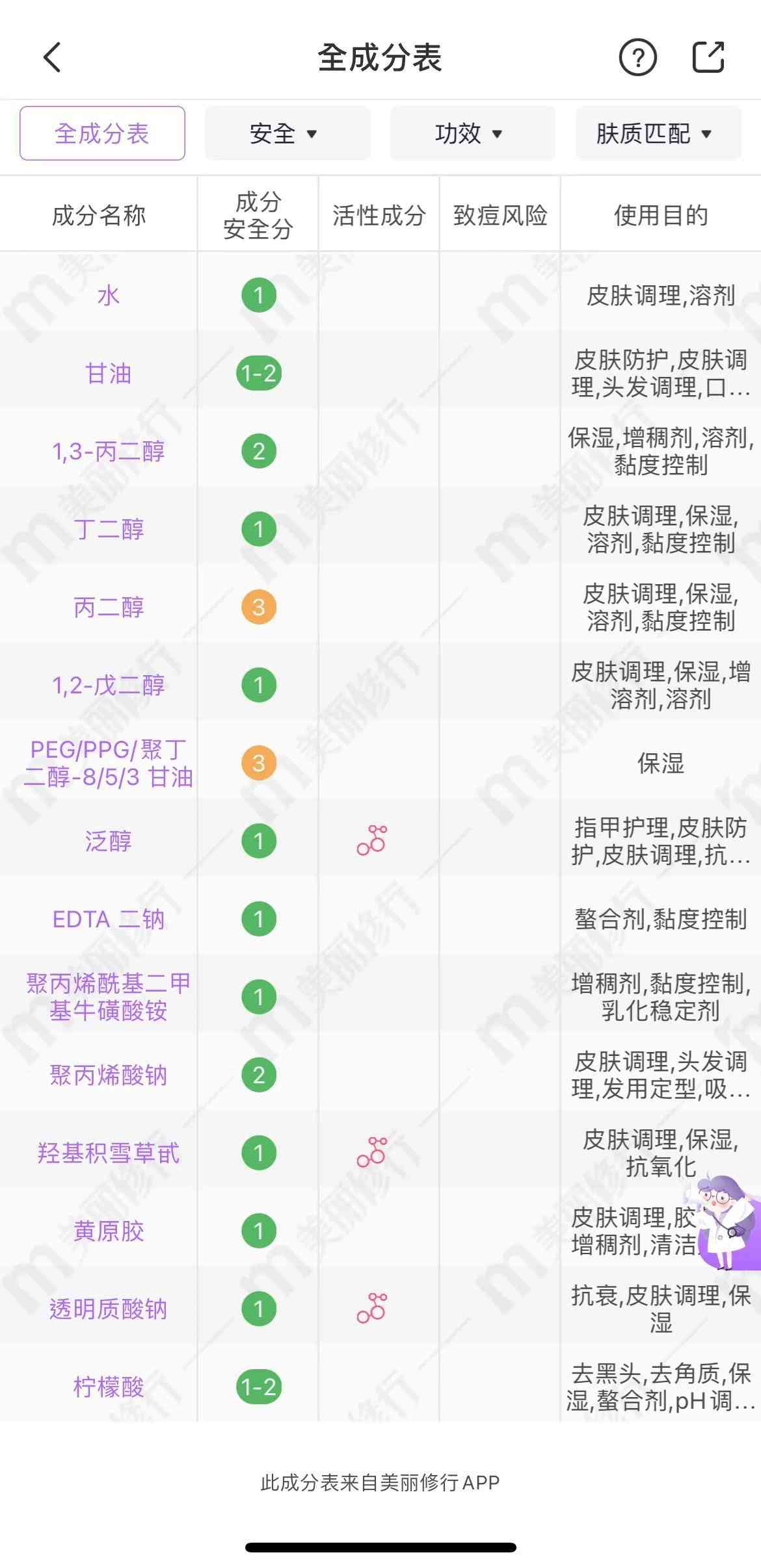 功效:修復(fù)。補(bǔ)水能力-3.5分