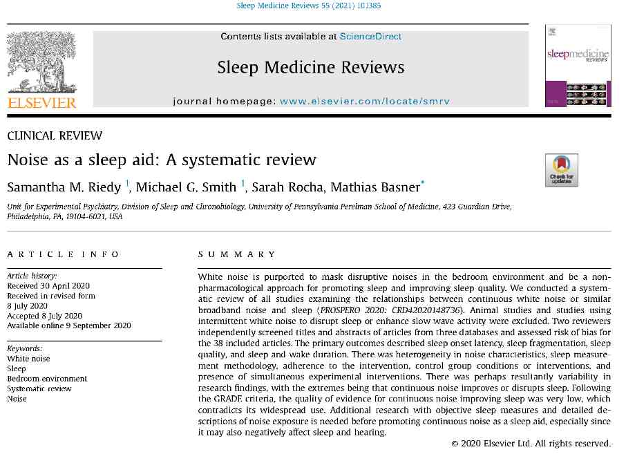 [3]RIEDY,Samantha M.,et al.Noise as a sleep aid:A systematic review.Sleep Medicine Reviews,2020,101385.
