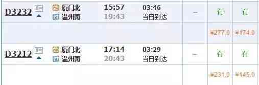 不光是溫州南至寧波段,沿海高鐵廈門北至寧波的部分車次,寧波至杭州、上海方向部分D字頭動(dòng)車票,也從9月開始出現(xiàn)折扣票。其中,廈門北至寧波的D3212次,折后二等座票價(jià)為221元(通常為278元),一等座353元(通常為445元),相當(dāng)于打8折;D3232次的二等座為265元,一等座424元,相當(dāng)于打9.5折。而寧波至廈門北的動(dòng)車票暫時(shí)沒有折扣。