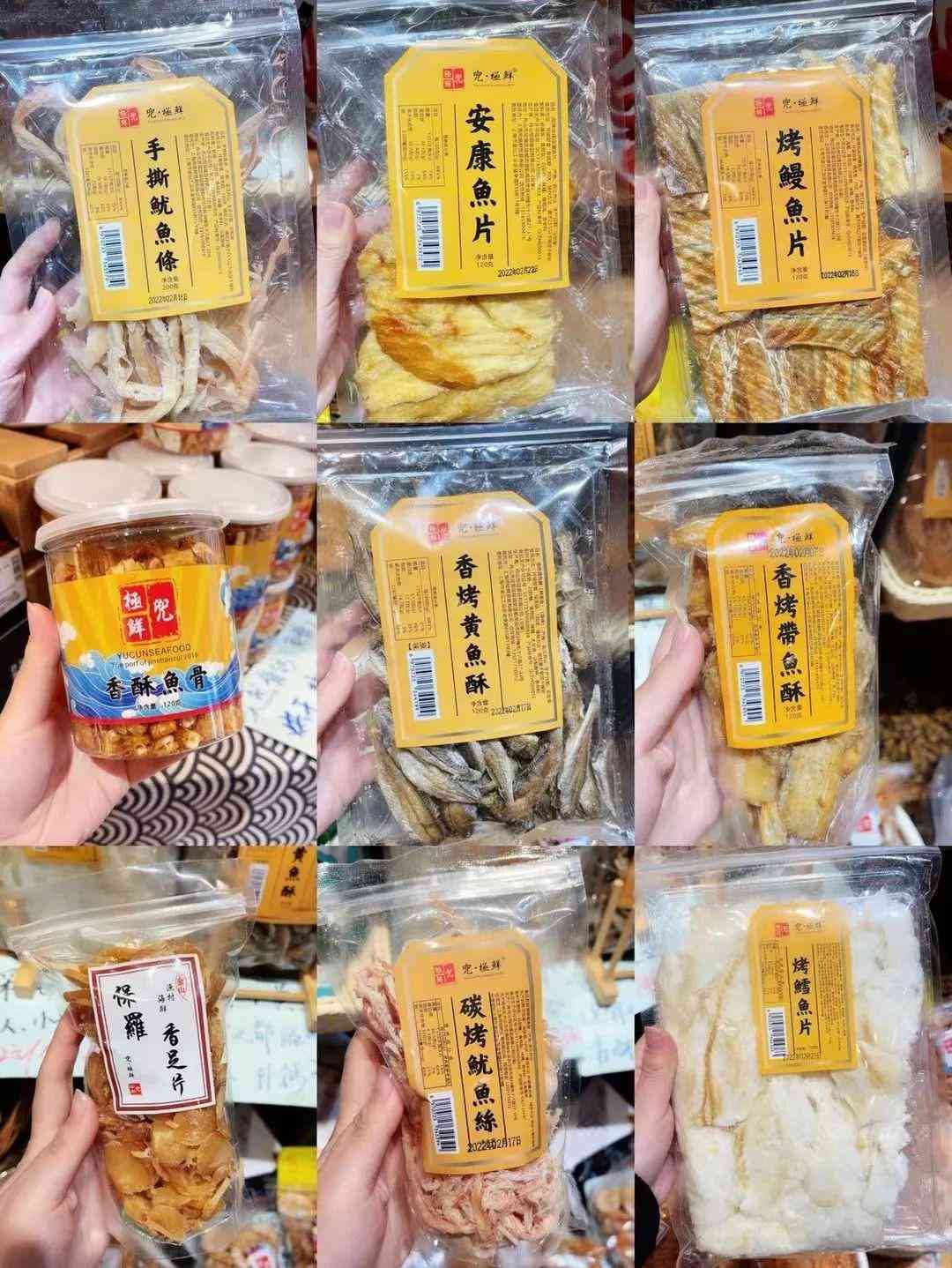 走進(jìn)店里,一股濃郁的海產(chǎn)品風(fēng)味撲面而來,海鮮干貨和零食整齊排列在貨架兩邊。這里有200多種老少皆宜的海鮮類食品,有小朋友愛吃的魚骨、海苔、魷魚絲;有大人們喜歡吃的蝦皮、開洋、烤對蝦,還有黃泥螺、蟹糊、嗆蟹、黃魚鲞……店內(nèi)還有20多種無限量免費(fèi)試吃的小零食,給游客們帶來了“一站式”的愉悅購物體驗。