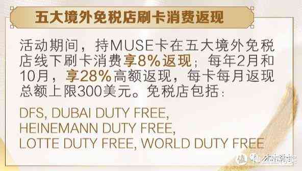 1、MUSE卡本身28%返現(xiàn),每卡最高300美金,共5張卡,一共5×300=1500美金;