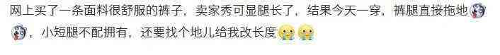 但買(mǎi)回家才發(fā)現(xiàn),賣(mài)家們理解的“顯腿長(zhǎng)”的意思是:褲子很長(zhǎng),能穿上的你腿肯定也長(zhǎng)。