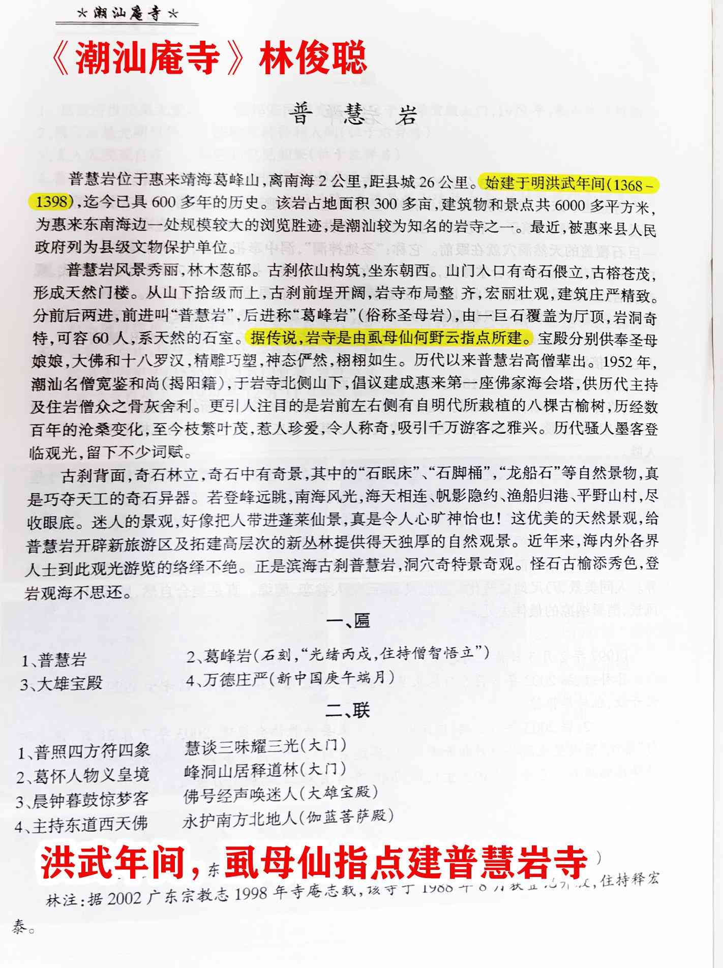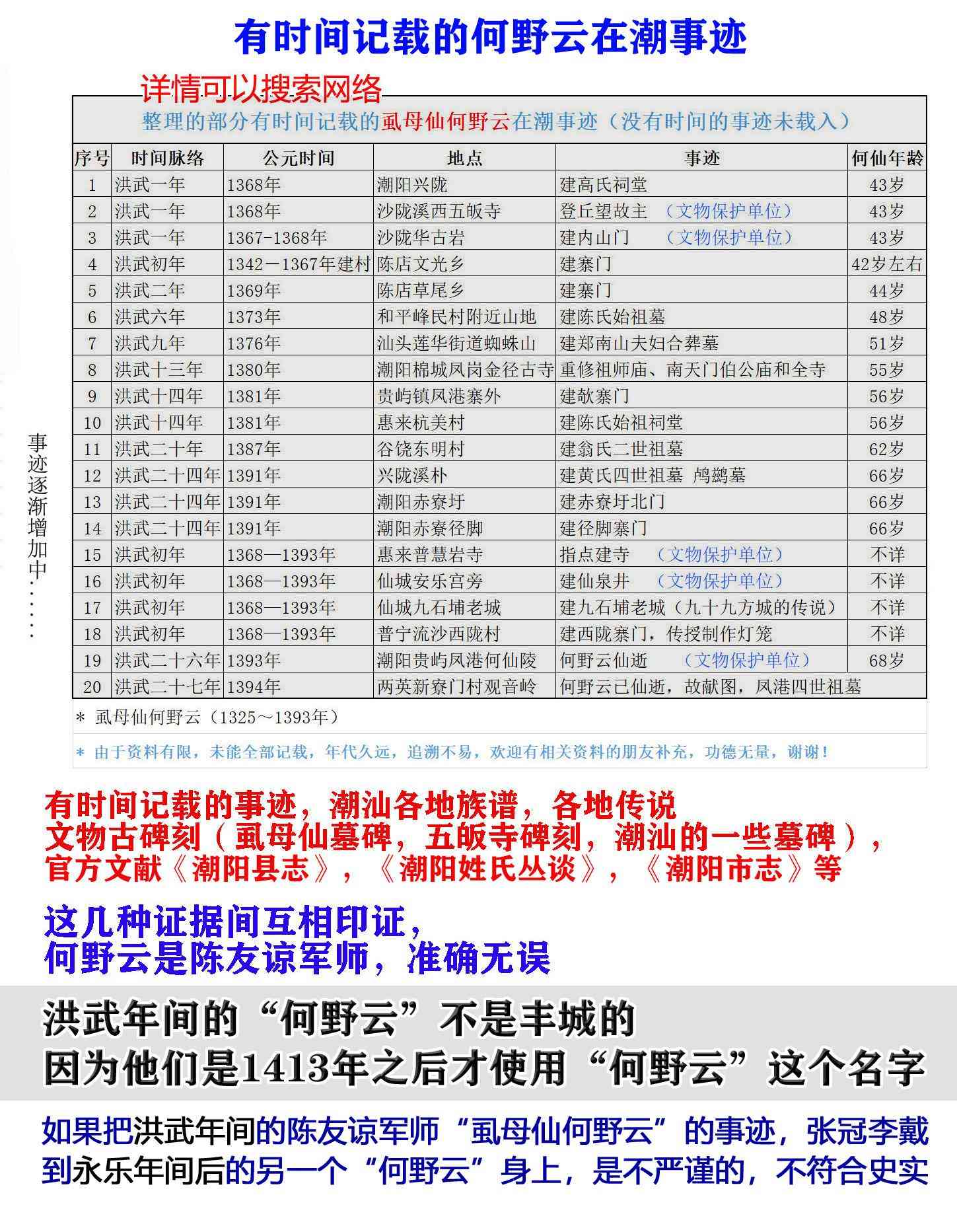 種種這些事跡,從時(shí)間上證明,明朝剛建立的時(shí)候,1368年,虱母仙已經(jīng)在潮汕了,這個(gè)證明自古以來(lái)傳言的何野云是陳友諒軍師從時(shí)間上來(lái)看是吻合的。