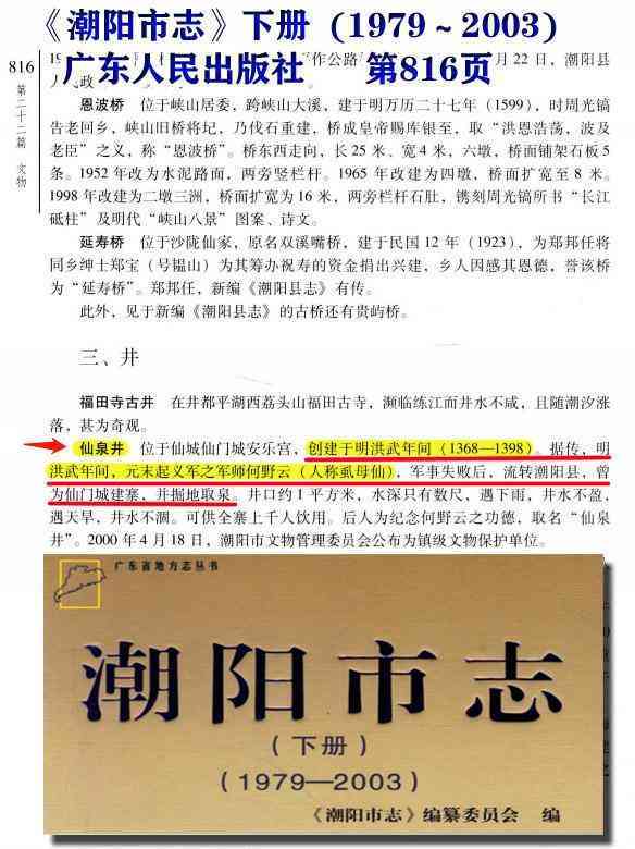 據(jù)官方志書(shū),(1979~2003)版《潮陽(yáng)縣志》第816頁(yè)記載:虱母仙在洪武年間為仙門(mén)城建寨,并掘地取泉,后人取名“仙泉井”,現(xiàn)為文物保護(hù)單位。