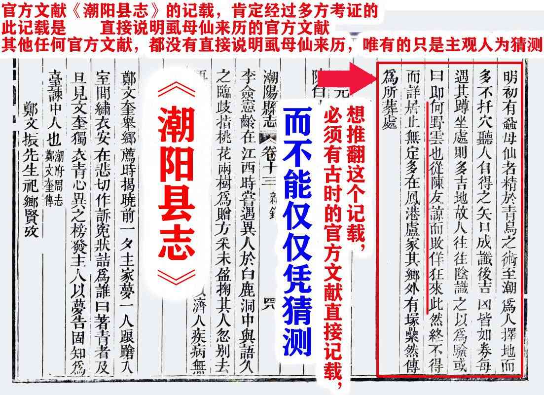 虱母仙并非明朝的官員或者官方的堪輿者,明朝的當(dāng)代官方志沒(méi)有記載,這很正常。事實(shí)上,民間地理師要引起官方的關(guān)注并記載入史志書(shū),史來(lái)有幾人?歷朝歷代,大部分的民間堪輿地理師,官方志也無(wú)記載。但是,隨著“虱母仙”信仰逐漸在民間流傳與興盛,到清朝時(shí)期,虱母仙才引起了官方的關(guān)注,到了光緒年間,《潮陽(yáng)縣志》對(duì)其進(jìn)行了考證,并記載。明朝的當(dāng)代官方志沒(méi)有記載虱母仙,這恰好證明虱母仙不是明朝的官員或官方的堪輿者,只是民間的地理師。但是認(rèn)祖宗者自己宣稱(chēng)其祖先是明朝永樂(lè)年間欽天監(jiān)規(guī)劃皇陵(真假未經(jīng)考證)。這說(shuō)明:虱母仙與認(rèn)祖宗者是不同的兩個(gè)人,此何野云非彼何野云。
