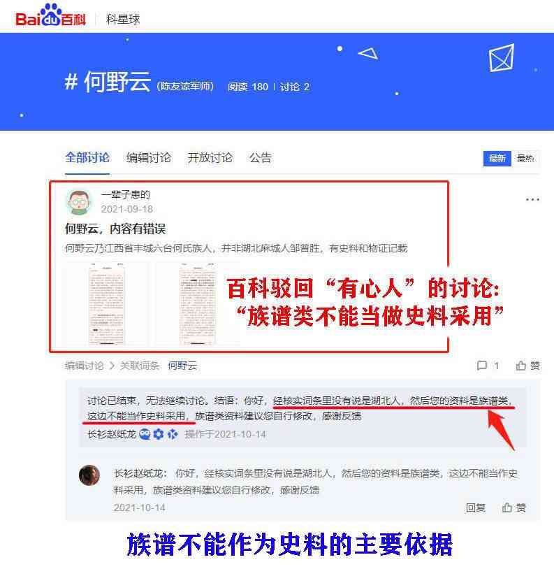 從百科中,亦可發(fā)現(xiàn),“有心人”試圖修改百科的記載,被百科駁回了,原因是:“資料是族譜類(lèi),不能當(dāng)作史料采用”。而“有心人”,大部分依據(jù)正是其族譜的記載,是非官方的記載。我們從百科的駁回,可以知曉,族譜沒(méi)有公信度,真實(shí)性存疑,不能作為史料的主要依據(jù)。