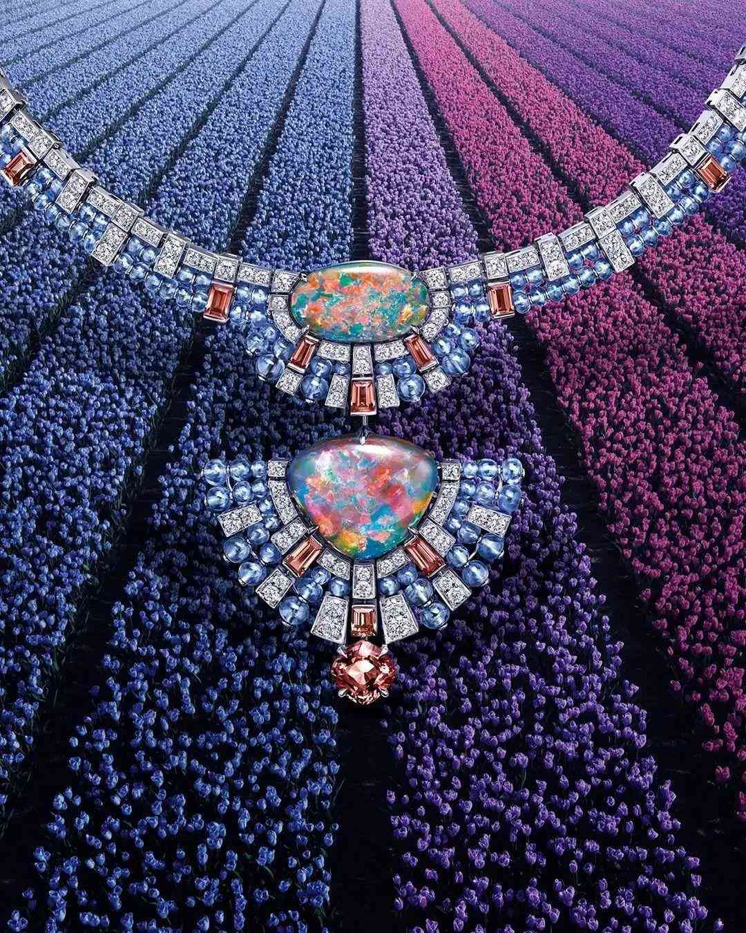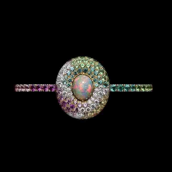 其實自 1960 年代以來,珠寶大牌已經(jīng)將歐泊與裝飾性硬石(翡翠、珊瑚、青金石、孔雀石、綠松石、縞瑪瑙和砂金石)一起使用。但那時歐泊從來都不是獨自美麗,總?cè)鄙僖粋€全面展示的契機。伯爵的 Yves Piaget 曾經(jīng)說過:“如果有一種寶石可以完美地捕捉到地球的豐富性,那就是歐泊,其可變的化學和物理特性相互影響,不同但完全互補,從而產(chǎn)生絕妙的化學反應?!?/span>