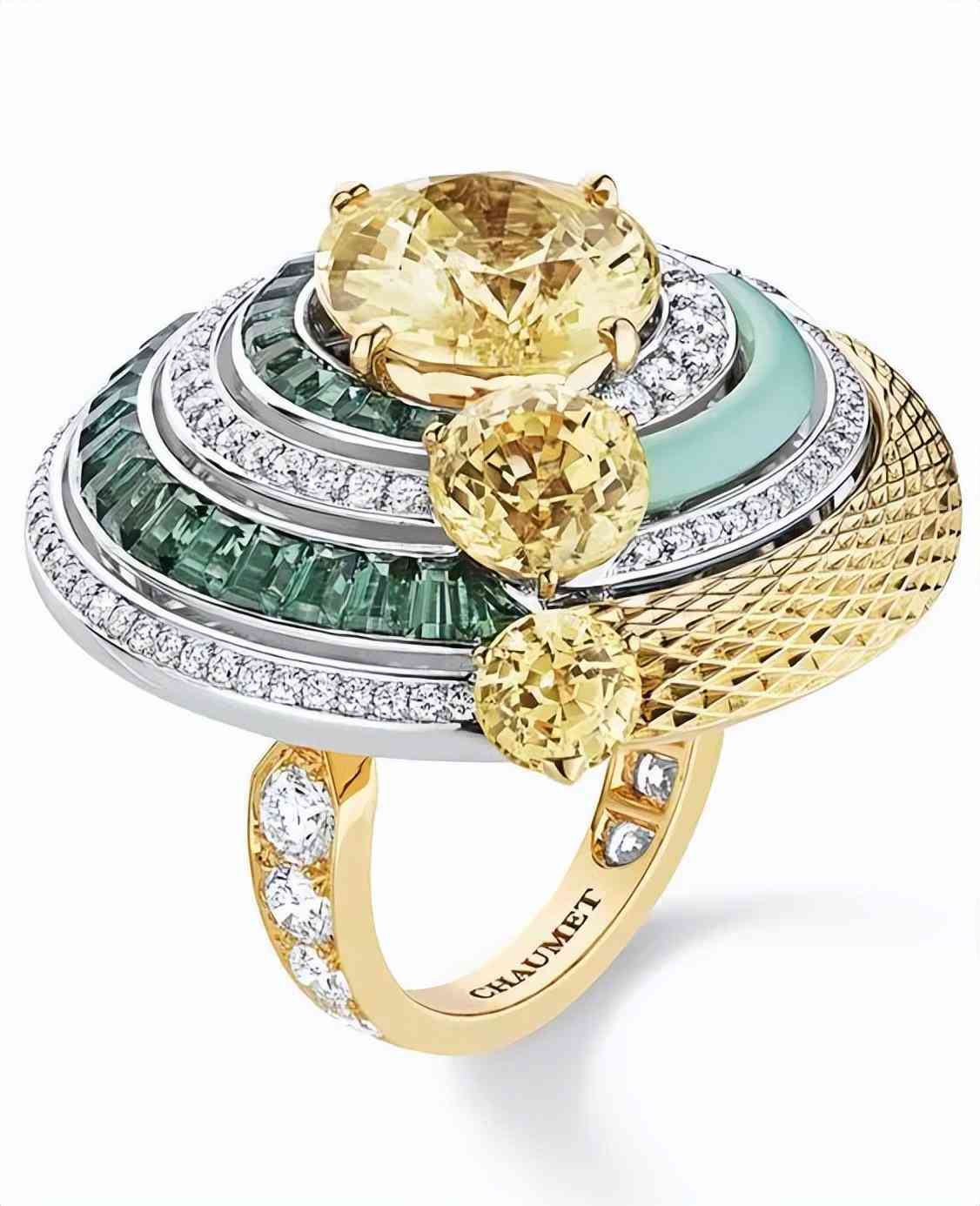 Chaumet 尚美巴黎 Ondes et Merveilles 高級珠寶系列 Under the Sun戒指 黃金、白金、碧璽、藍寶石、玉髓、鉆石