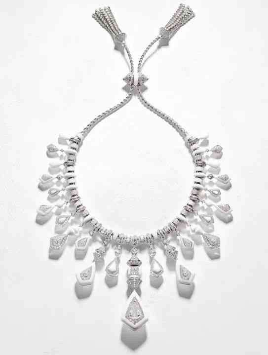 但近兩年寶詩龍對材質(zhì)的強勢突破讓水晶開始在高珠圈流行起來,因為設計師們發(fā)現(xiàn)沒有比水晶更能與鉆石呼應的“角色”,它的晶瑩剔透和擁有璀璨火彩的鉆石形成完美映襯。而寶詩龍之前讓大理石為它增加厚重感,更是展現(xiàn)了豐富的肌理變化,展現(xiàn)出白色從濃到淡,從渾厚到透明再到閃爍的光之美。