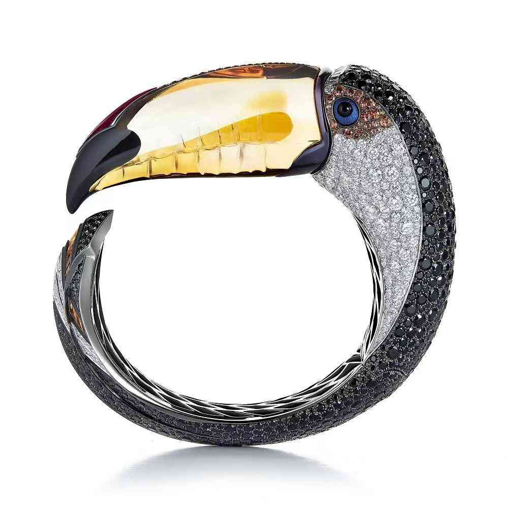 Toucan 手鐲則用黃水晶以 3D 雕刻的方式打造了鳥喙,立體又逼真,還散發(fā)流光溢彩。