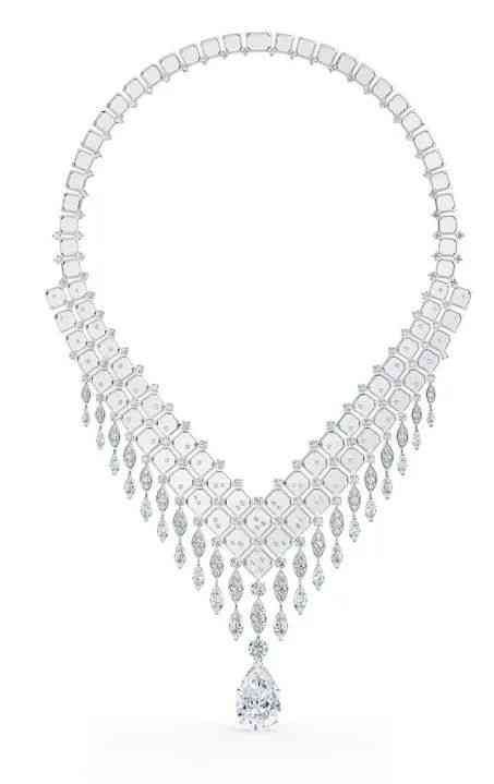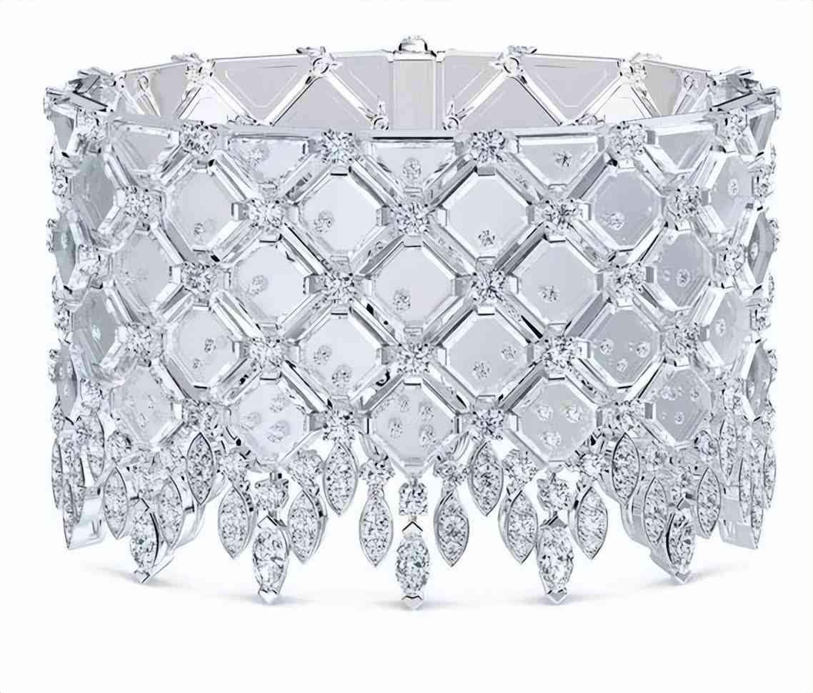 De Beers Jewellers 今年高珠中的 Frozen Capture 篇章則用巴西水晶致敬冰與鉆石的碰撞,這也是這個主打鉆石的品牌次在高珠系列中運用水晶。設計師以方形水晶和拋光白金營造出鏡面效果,再鑲嵌閃耀鉆石,如同初春時節(jié)解凍的冰塊在小溪中流淌,陽光在水波和冰塊上閃耀折射出不同的光芒。