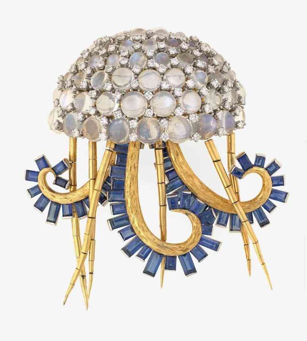 Jean Schlumberger 水母胸針 月光石、鉆石、藍寶石