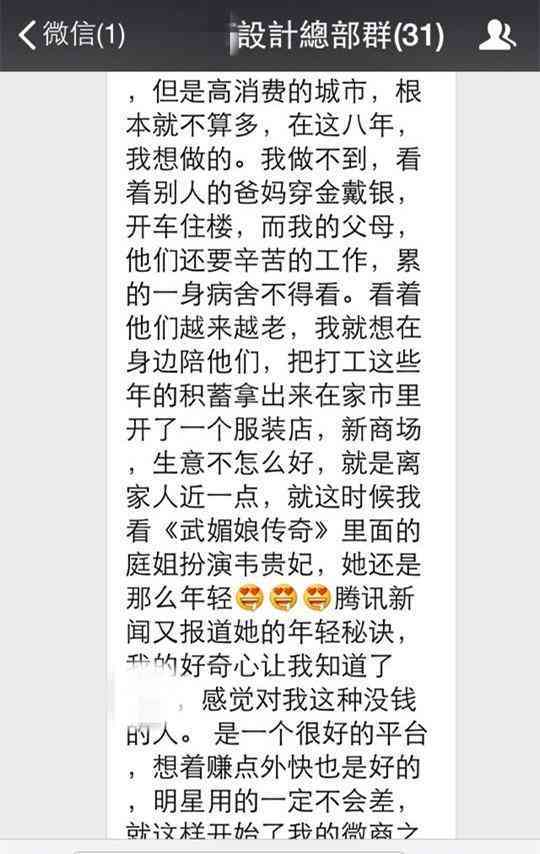 要知道,從事微商行業(yè)的絕大多數受眾,都是文化水平不高,有大把空閑時間的中年女人。