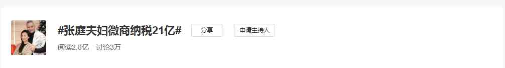 2019年1月,張庭夫婦微商納稅21億的話題沖上熱搜,吃瓜群眾震驚不已。