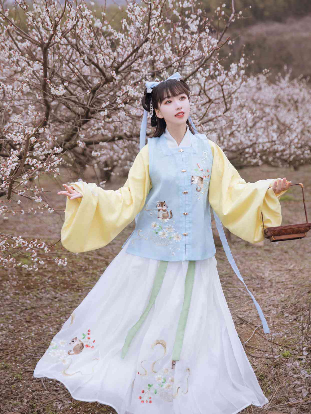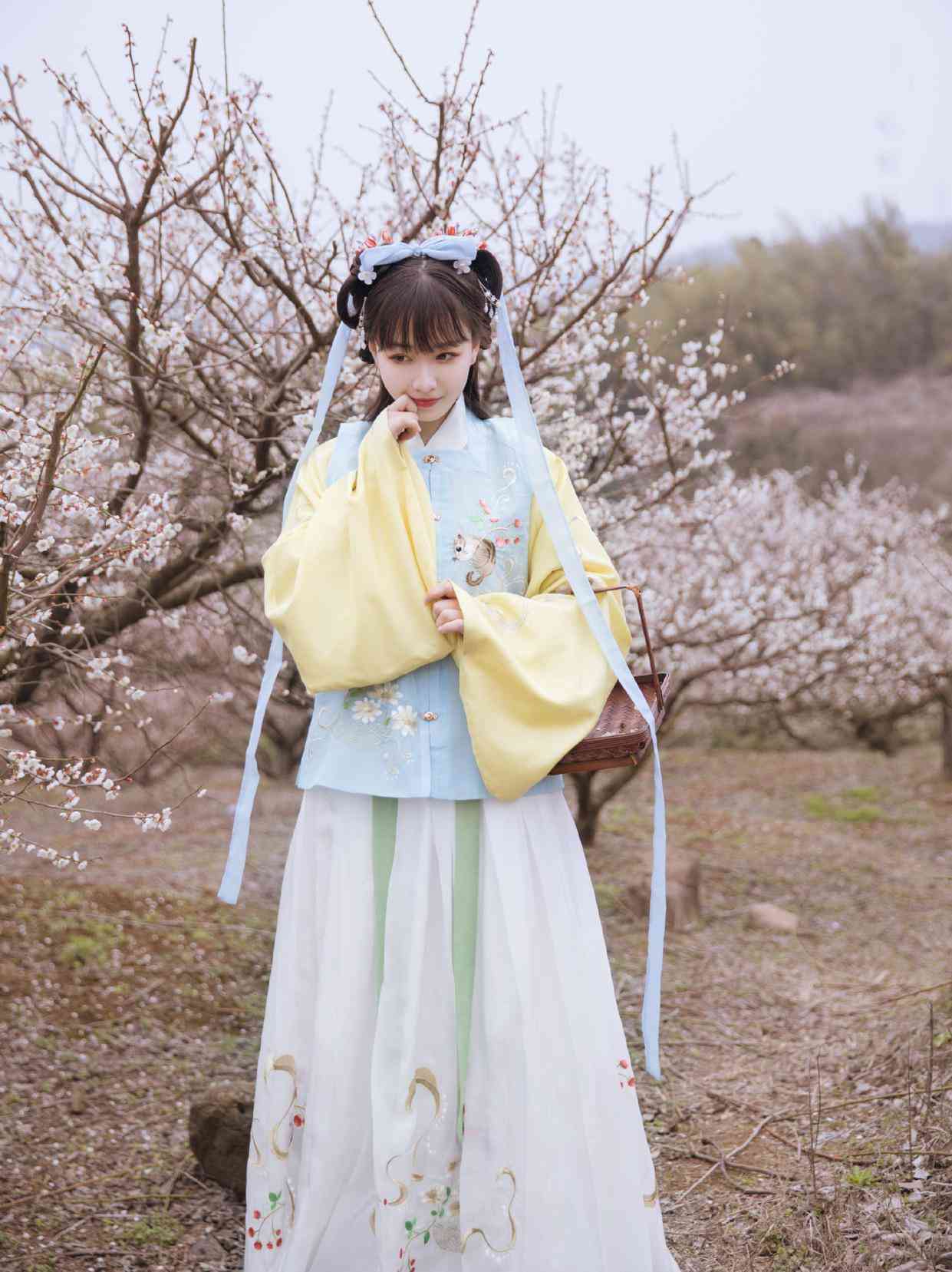 用藍(lán)色和黃色撞色的搭配,讓活潑可愛的感覺淋漓盡致的展現(xiàn)出來。只要穿上這件漢服,整個人都會變得非常的溫柔而又可愛,可以說它是一件專門為夏天而設(shè)計的漢服了,現(xiàn)在漢服的工期都很長,我們也可以在冬季下單,夏季的時候就能收到漢服啦。