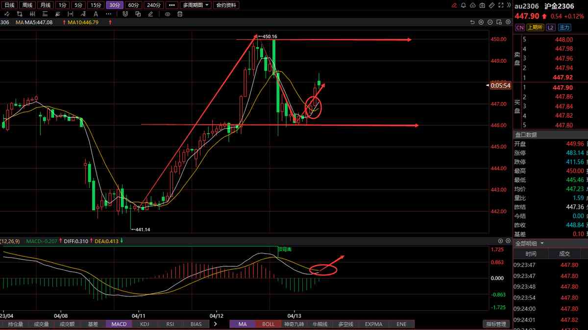 今日操作:多單進程者短線操作為佳,上方壓力位450,下方支撐446,前期空單離場者關(guān)注450點位突破情況,突破后可再次逢高試空。