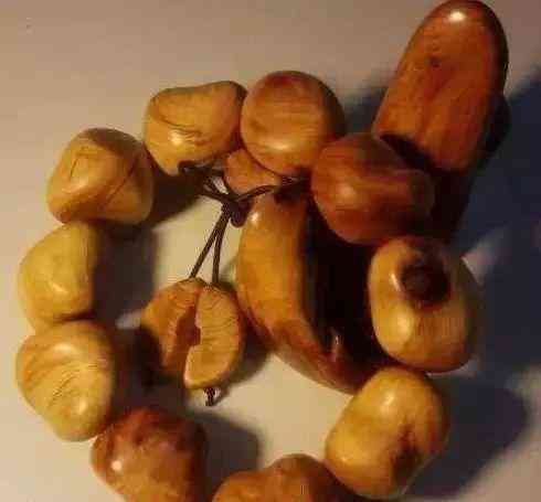 將山楂核取出,經(jīng)過清理,曬干后,打個(gè)小孔,穿起來,由于造型獨(dú)特,也是很漂亮的。并且山楂核極易變色,包漿后,特別美。