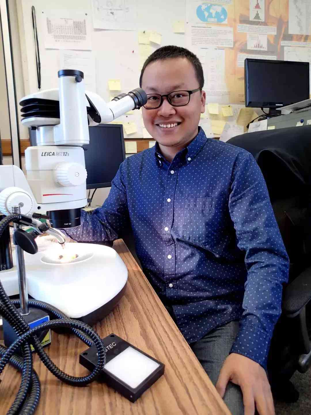 邢立達博士在加拿大薩斯喀徹溫省皇家博物館觀察琥珀標(biāo)本