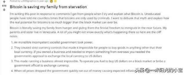 時間快進(jìn)到2017年,委內(nèi)瑞拉的經(jīng)濟(jì)已經(jīng)無可挽回,858graphics父親的空調(diào)維修生意也做不下去的時候,858graphics說:“多虧了比特幣,才讓我們有能力養(yǎng)活自己,也有能力考慮移民到其他國家的問題”。