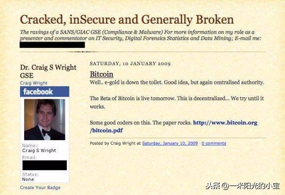 澳大利亞時間2009年1月9日,比特幣官方上線之前,Wright在博客文章中寫下的“比特幣測試版本明天將會上線”的文字記錄