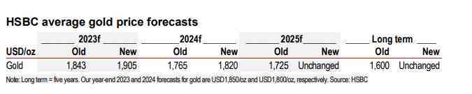 將2023年和2024年的平均價格預測分別從1843、1765美元/盎司上調(diào)至1905、1820美元/盎司。