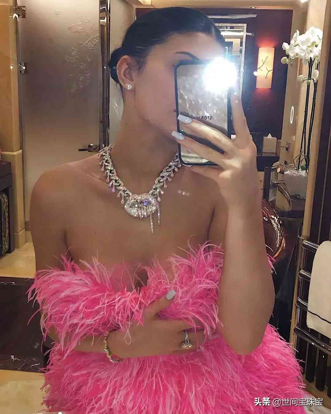 生日派對的重頭戲當然是生日禮物了。男友Travis Scott送上的禮物非常貴重,是Eliantte定制鉆石項鏈,耀眼程度閃瞎眼睛。