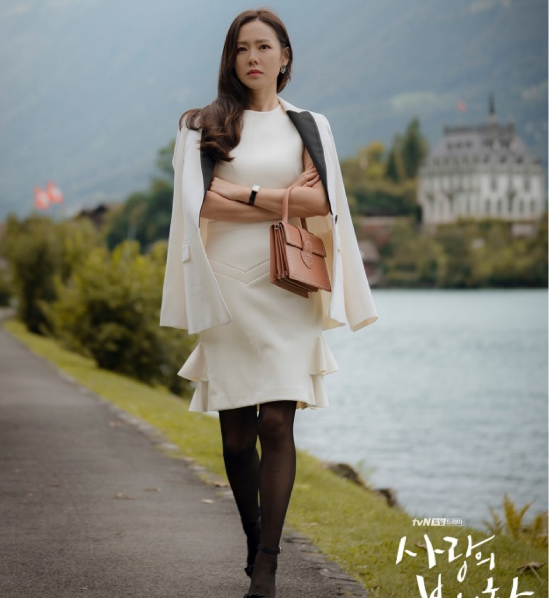 一頭柔順的波浪卷發(fā),全部擼到一邊,正好露出了小巧精致的耳環(huán),身上穿著一件純白色的魚尾連衣裙,裙子的剪裁十分貼身,就是在這樣的情況下,孫藝珍的身材依舊十分完美,小腹平坦一點(diǎn)贅肉也看不見,裙擺的處的荷葉邊設(shè)計(jì),給衣服增加了一絲甜美的感覺,下身則是黑色絲襪搭配黑色露趾高跟鞋,原本應(yīng)該土氣的黑絲,但在孫藝珍身上,完全沒有違和感,肩膀上披著同款的白色西裝,雙手橫抱在胸前,大小姐氣場(chǎng)無敵。