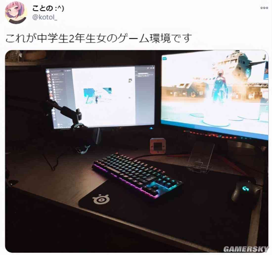 最近有位日本女網(wǎng)友在推特分享自己的電腦桌擺設(shè),包括雙屏幕、鍵盤(pán)、鼠標(biāo)還有麥克風(fēng)等等周邊設(shè)備,看起來(lái)是個(gè)十足的電腦游戲迷。