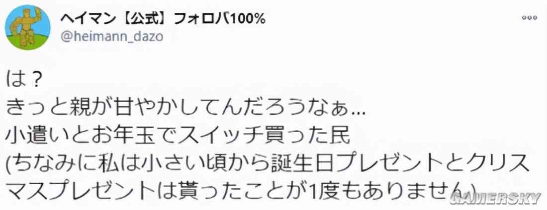 「啥?八成是跟父母討來(lái)的吧……(我小時(shí)候都沒(méi)拿過(guò)半次生日禮物或圣誕禮物)」
