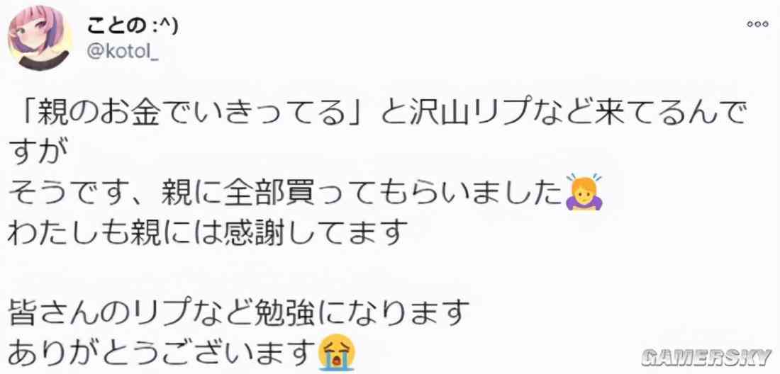 「我收到許多人說(shuō)我『拿父母的錢(qián)炫耀』的回應(yīng)。沒(méi)錯(cuò),這些的確都是父母買(mǎi)給我的,所以我很感謝我的父母。大家的回應(yīng)讓我受益良多,謝謝?!?/p>