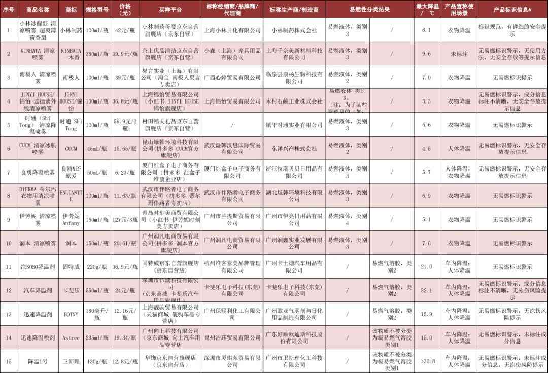 本次比較試驗依據相關標準,未在產品標識中按照其易燃分類進行標注和提示的產品屬于“無易燃標識警示”。