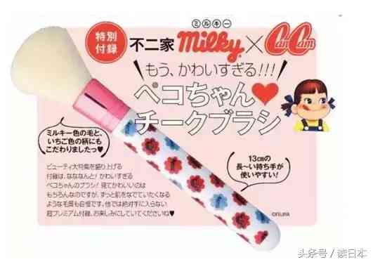 還有可愛的不二家化妝刷,筆身的圖案再現(xiàn)了其經(jīng)典牛奶糖的包裝,毛刷部分非常柔軟,十分適合腮紅的上妝。