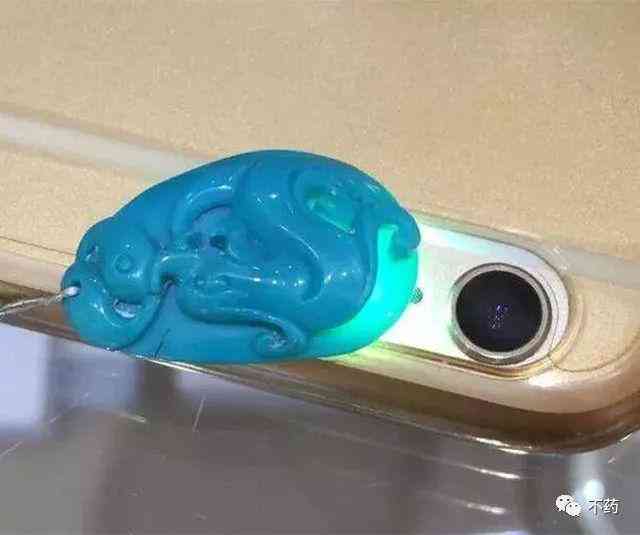 (2)“透”。這里說的透并不是說像翡翠那樣透光,而是打光通透。玉化綠松石是一種半透明玉石,在厚度適中的地方打燈會散發(fā)出一種翠色綠光。