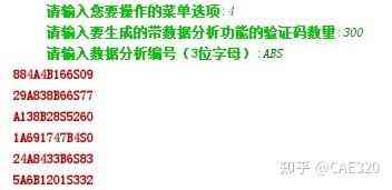 (4)生成含數(shù)據(jù)分析功能的防偽編碼。在主程序界面中輸入數(shù)字“4”菜單項時,將進(jìn)入“生成含數(shù)據(jù)分析功能的防偽編碼”的功能執(zhí)行。在輸入要生成的帶數(shù)據(jù)分析功能的驗證碼數(shù)量中輸入300,并且按下鍵;在輸入數(shù)據(jù)分析編號(3位字母)中輸入ABS,并按下鍵,將生成30000個如圖9所示的25位防偽碼,如圖12所示。