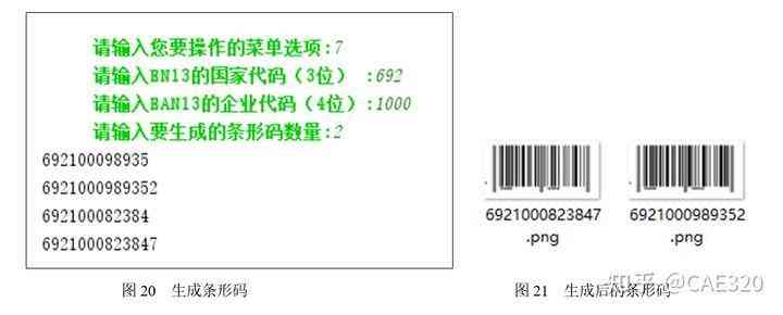 (7)EAN-13條形碼批量生成。在功能選擇界面中輸入數(shù)字“7”時,將進(jìn)入EAN-13條形碼批量生成功能選項。在請輸入EN13的國家代碼(3位)中輸入692;在請輸入EAN13的企業(yè)代碼(4位)中輸入1000;在請輸入要生成的條形碼數(shù)量中輸入條形碼的數(shù)量,這里輸入2,并按下鍵,將自動生成條形碼,如圖20所示。生成后的文件保存在項目根目錄下的barcode目錄中,效果如圖21所示。