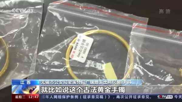 無錫市公安局梁溪公安分局廣瑞路派出所民警 尹科:比如說這個(gè)古法黃金手鐲,他們會(huì)跟對(duì)方說我現(xiàn)在要制作一批證書,標(biāo)題古法黃金手鐲,上面的成分是重金屬含量金999千足金,以此讓觀眾更加相信他們銷售的就是真黃金。