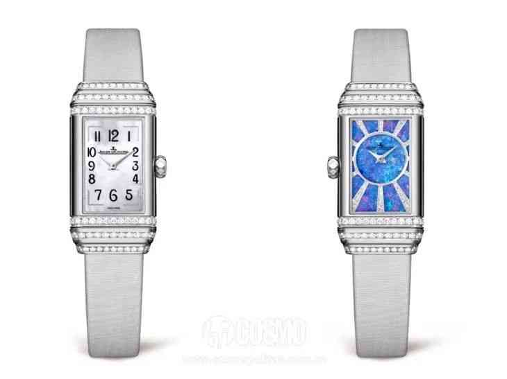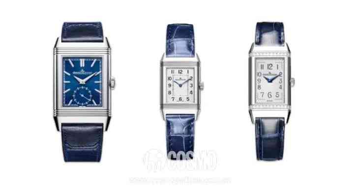 當然這個系列也有雙面翻轉(duetto),翻轉過來的藍色表盤與藍色漆皮表帶相配,當然都雙面翻轉了價格也貴了一倍。