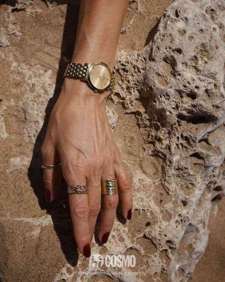 眼下就到露胳膊露腿的季節(jié)了,自然不能讓手腕空蕩蕩,金屬腕帶的手表和同是金屬質地的飾品疊加在一起,增彩效果顯著。