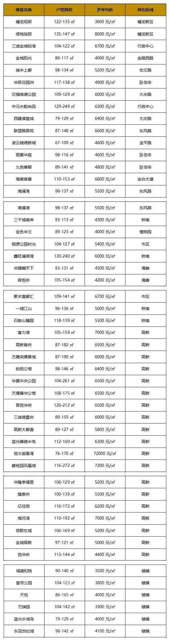 以下為寶雞各區(qū)域樓盤的具體價格: